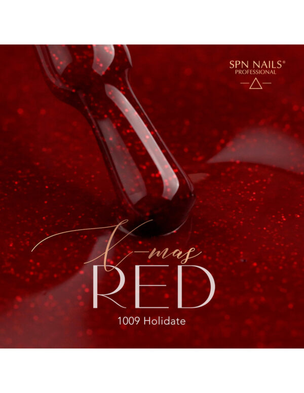 1009 Holidate UV LaQ 8ml – vernis gel rouge pailleté de la collection X-mas RED SPN Nails