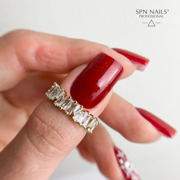 Appliqué sur acrylique ou gel, il s’adapte parfaitement à la matière dure, et grâce à sa forte adhérence, il ne glisse pas de l’ongle et ne s’use pas au niveau du bord libre.